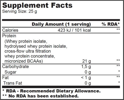 Iso Whey ZERO не содержит углеводов, жира и сахара. Нет бесполезных или скрытых питательных веществ, которые могут храниться в виде жира в организме.
